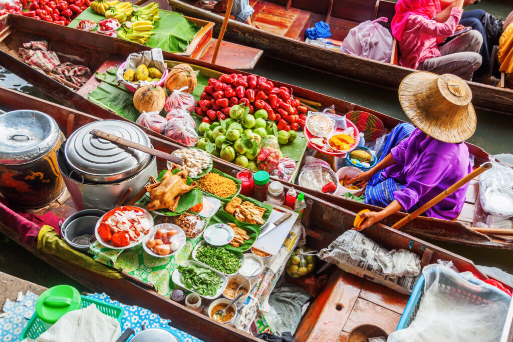 A gastronomia tailandesa é um festival de sabores intensos e equilibrados, onde o doce, o salgado, o ácido e o picante convivem em perfeita harmonia. Pratos icônicos como o pad thai, o tom yum (sopa picante com camarão) ou o som tam (salada de mamão verde) são apenas uma amostra da riqueza culinária do país. Os mercados de rua são o coração dessa experiência: ali é possível provar desde espetinhos grelhados até deliciosas sobremesas feitas com coco e manga.